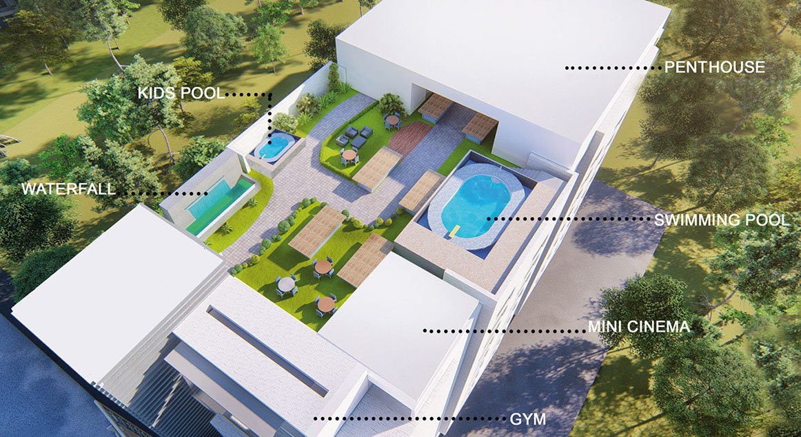 Designed landscape with plantation on roof